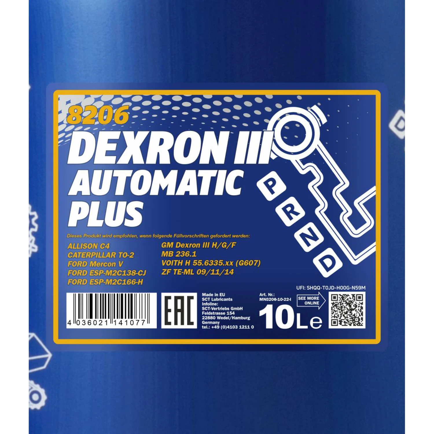 - ZF TE-ML 09/11/14, MB 236.1, Allison C4, FORD MERCON V, Caterpillar TO-2, Voith H55.6335xx, GM DEXRON III H/G/F